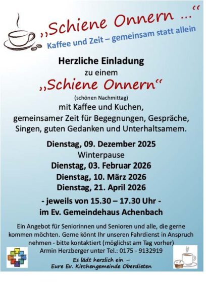 18.01.2026 um 9.30 Uhr in Oberdieten und um 10.45 Uhr in Niederdieten
