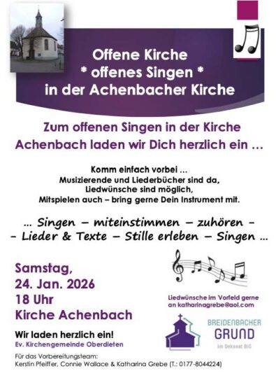 11.01.2026 um 9.30 Uhr in Oberdieten und um 10.45 Uhr in Achenbach